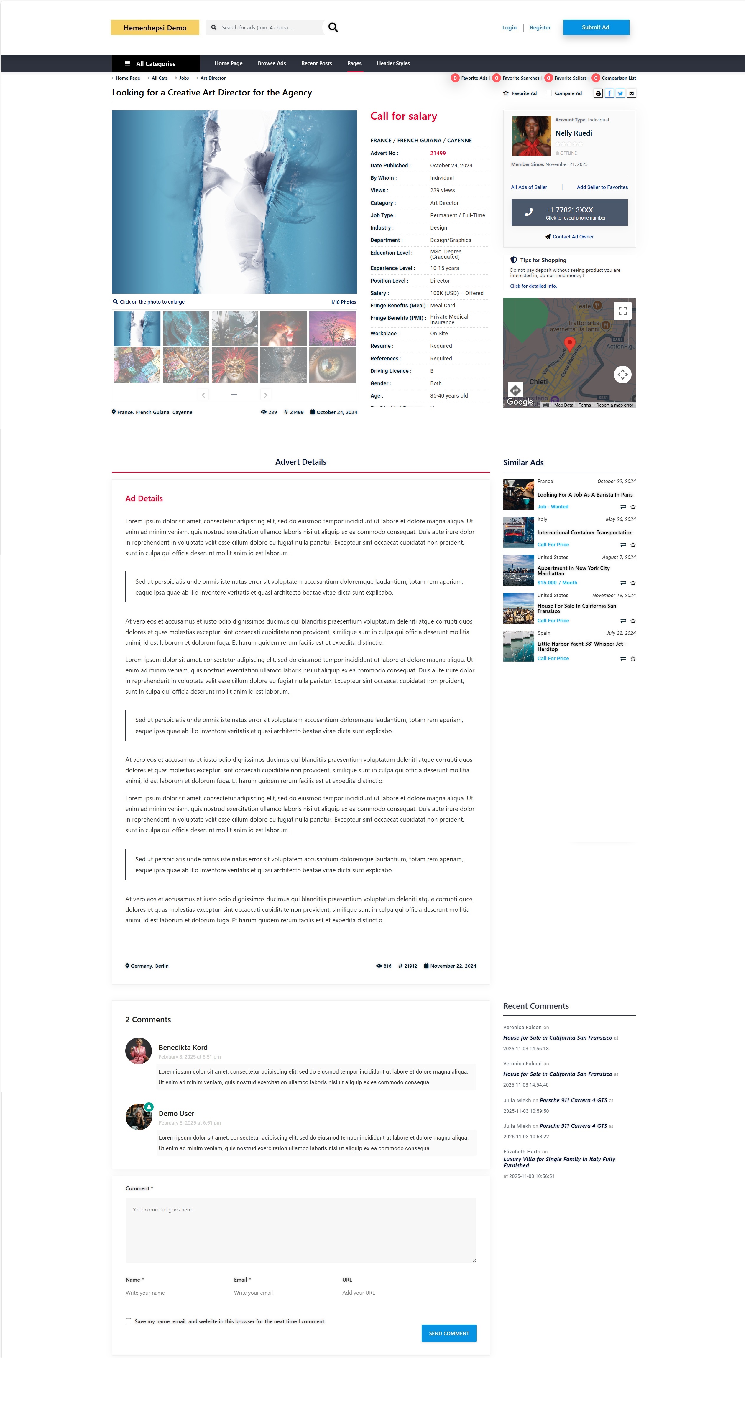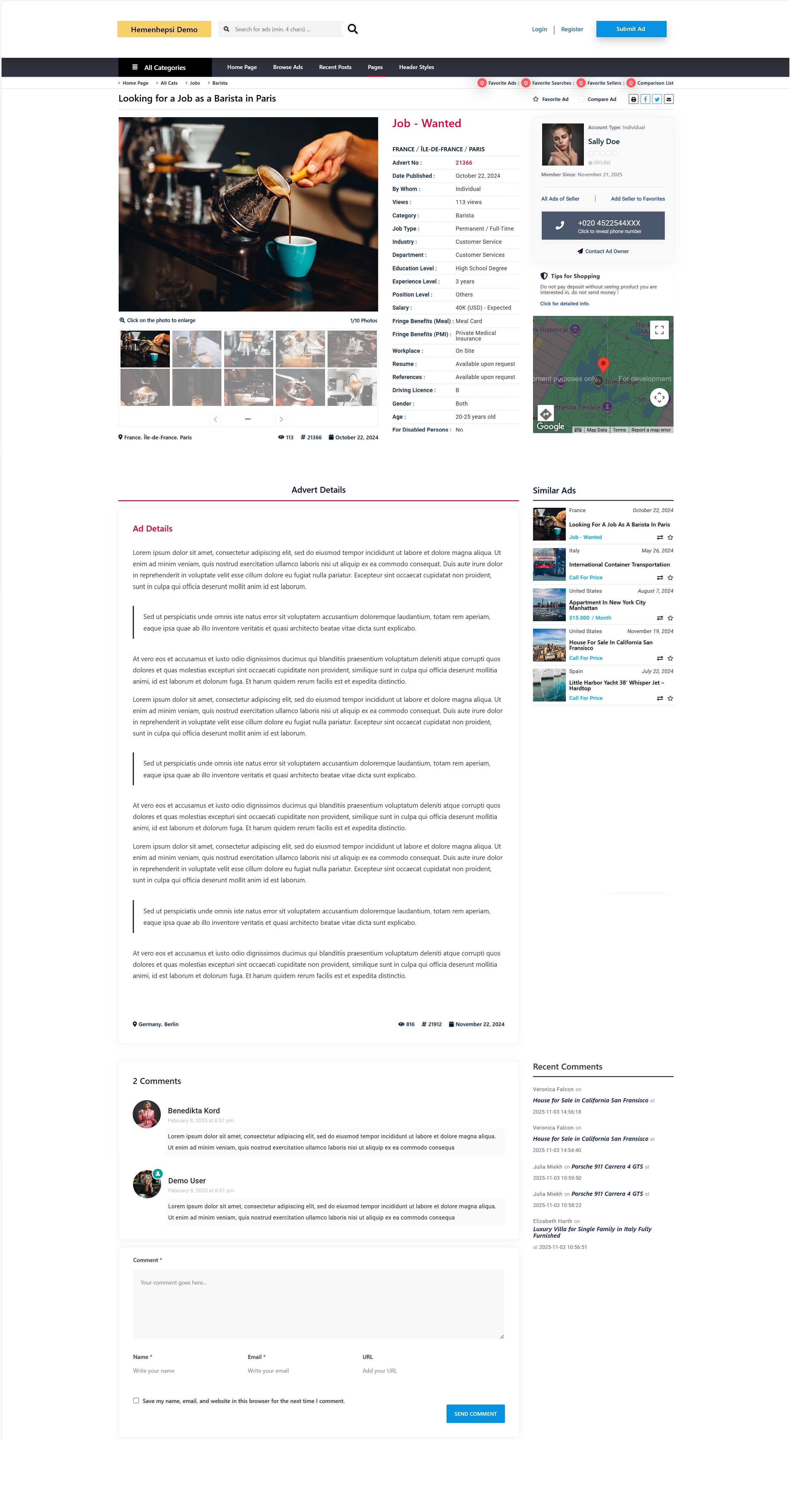 Adifier filters your result without page reload and with the help of custom fields users are able to refine their search